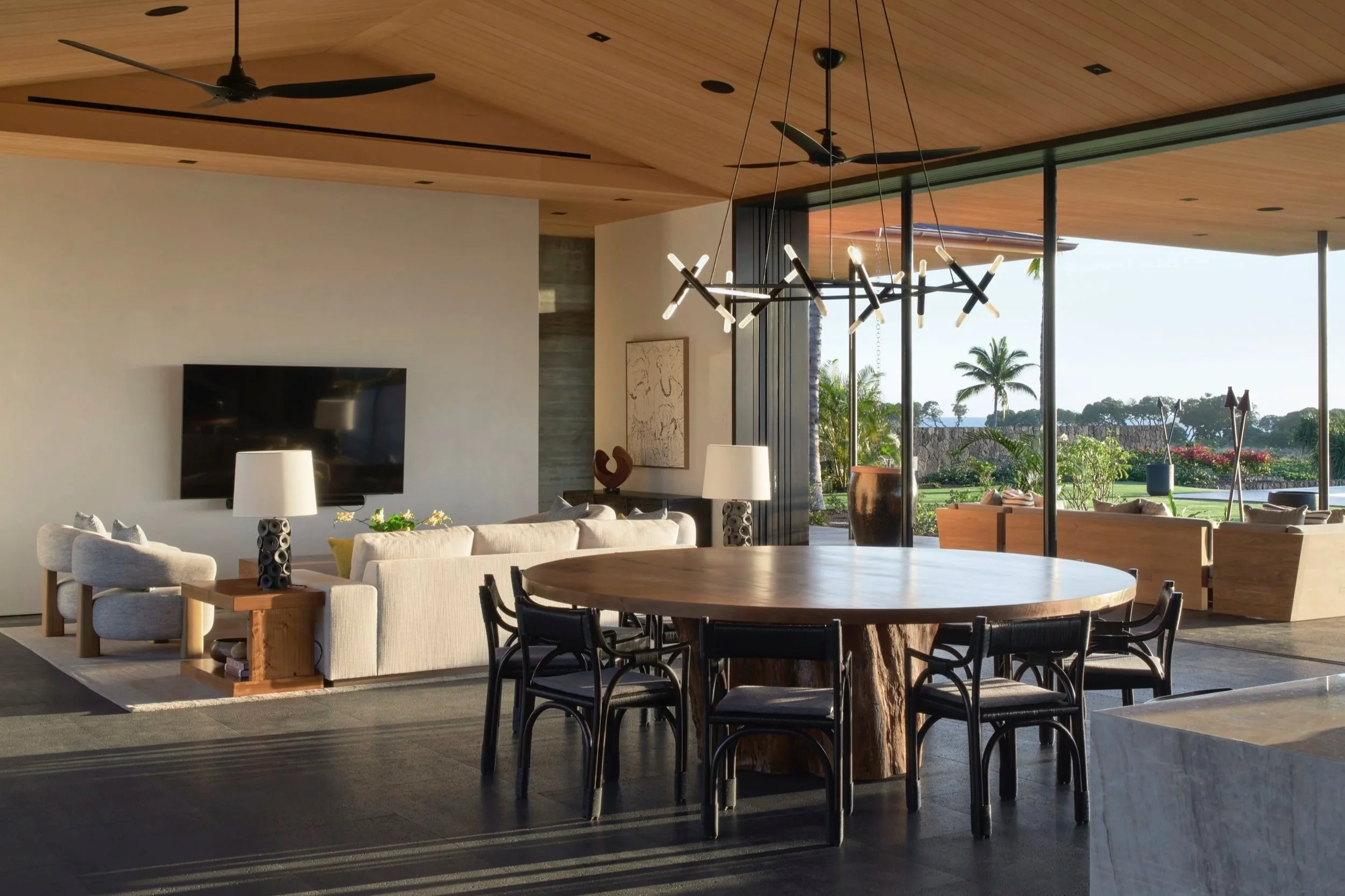 Designed by Shay Zak of Zak Architecture, the oceanview estate is named Hale Kai Apo, which means “home of the changing tides.” Six bedrooms and five full bathrooms are spread across 6,670 square feet, which come fully furnished by Averylily, a local interior design studio.